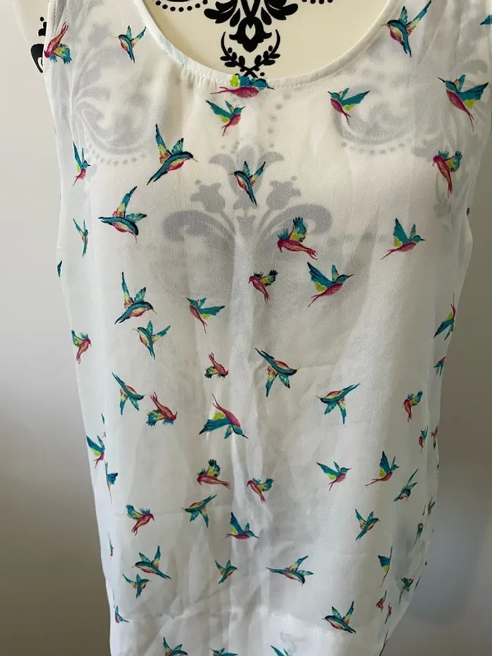 Top blouse débardeur Primark taille 38 blanc motif oiseau multicolore - photo numéro 1