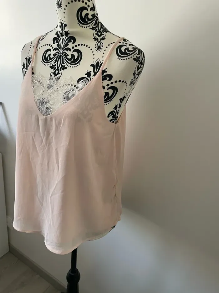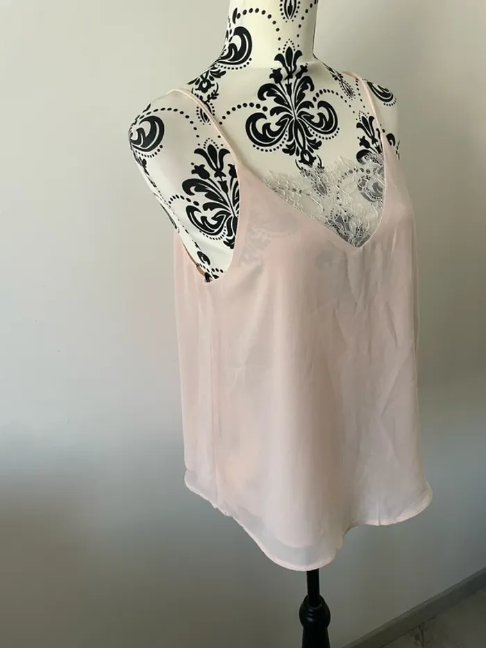 Top débardeur caraco Vintage Dressing taille M rose clair en dentelle - photo numéro 1