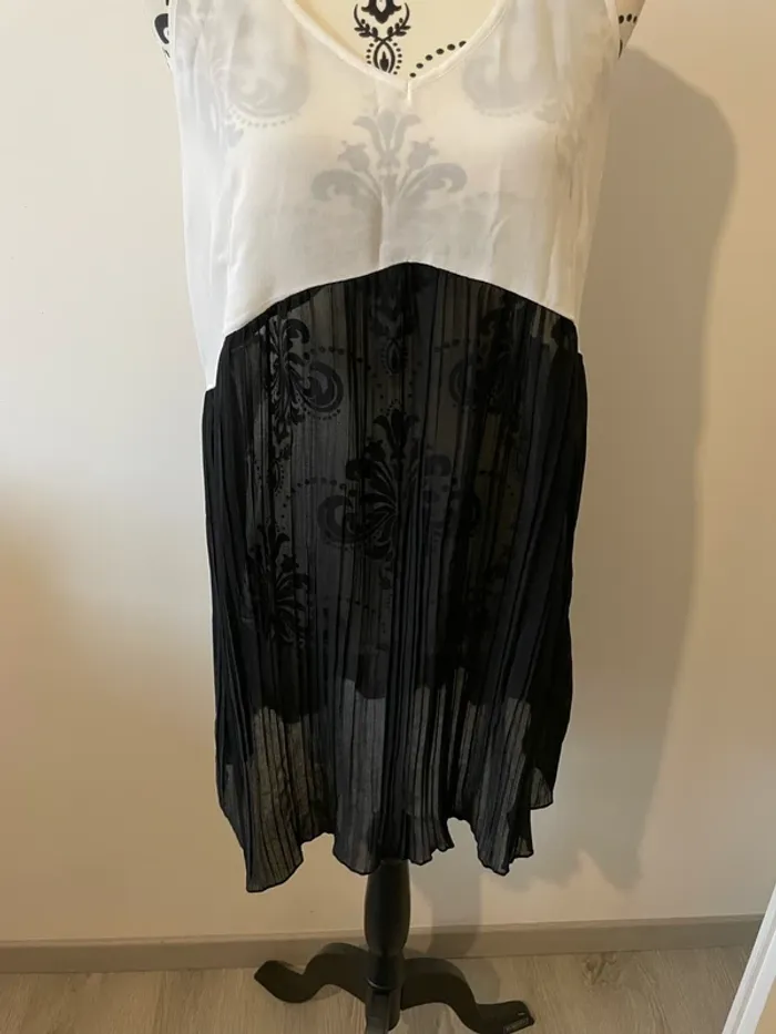 Débardeur tunique long Mado et les autres taille 38 noir et blanc en voile bas plissé