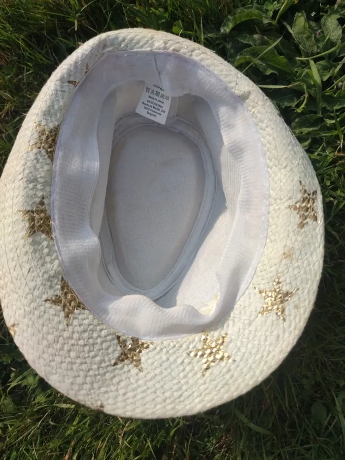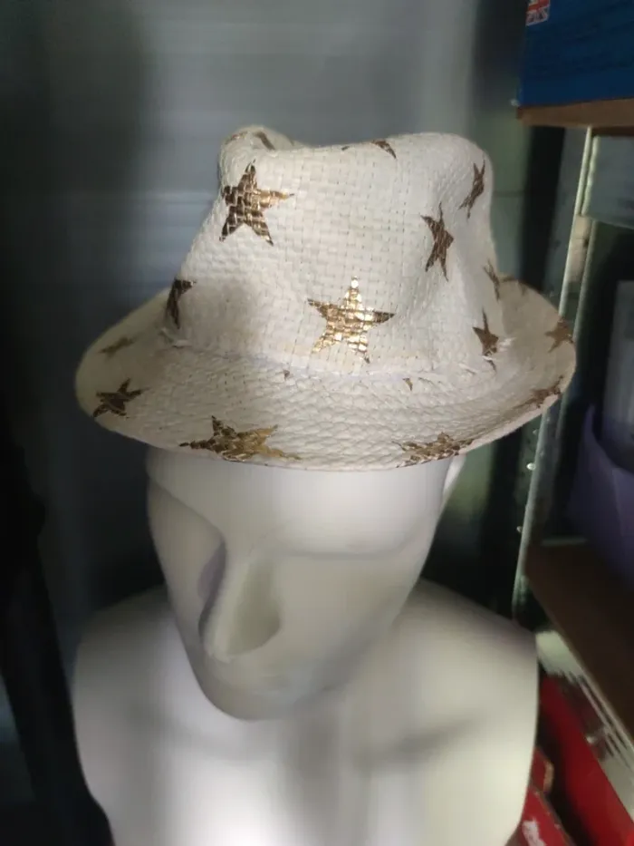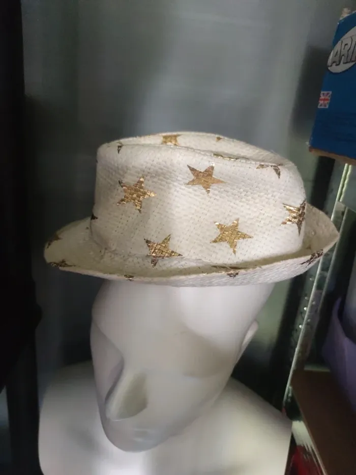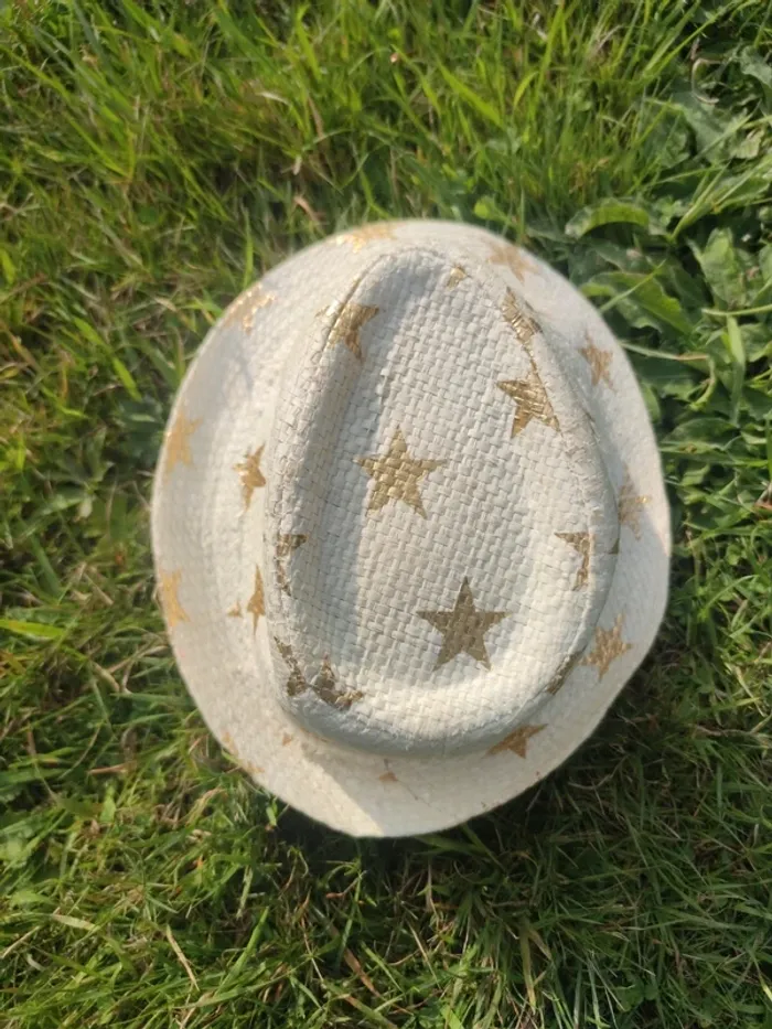 Chapeau en paille blanche avec étoiles dorées Très peu porté Genre cowboy cowgirl idéal fête école ou pour l'été style country