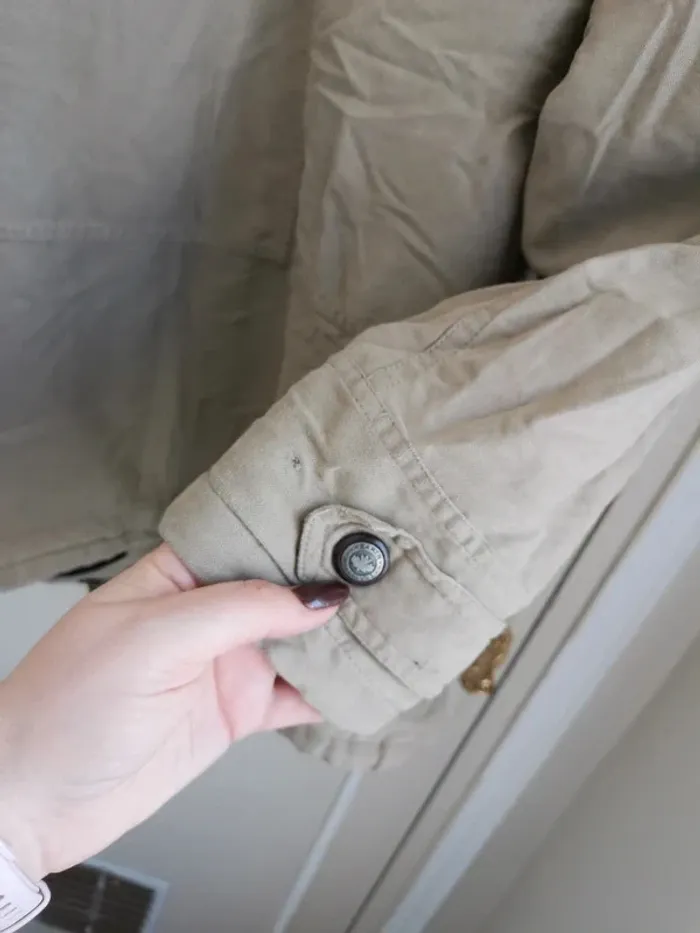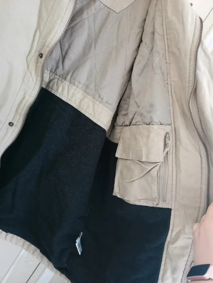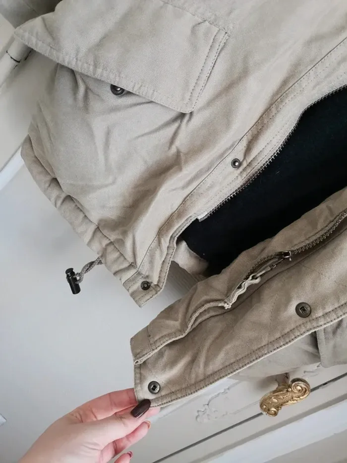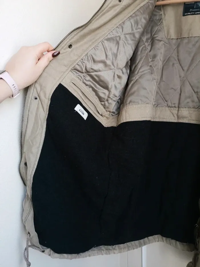 Manteau chaud et doux porté quelques fois. Taille 44 / 46. Tient chaud grâce au rembourrage manches et dos. Plusieurs poches. Fermeture principale en pression et zip. Composé de polyester, polyamide et acrylique. Touché mi daim mi velour. Dimensions : manches 58cm, épaules 56cm, hauteur 79cm. À noter : toutes petites tâches manches gauche et droite petit trou (manque pression) + usure au niveau du col. Relativement négligeable. Pas de capuche. Marque Kiabi. #manteau #taille46 #danou_H46 #danou_H48 #danou_HXL -- #danou00_07 #danou00_BAC2