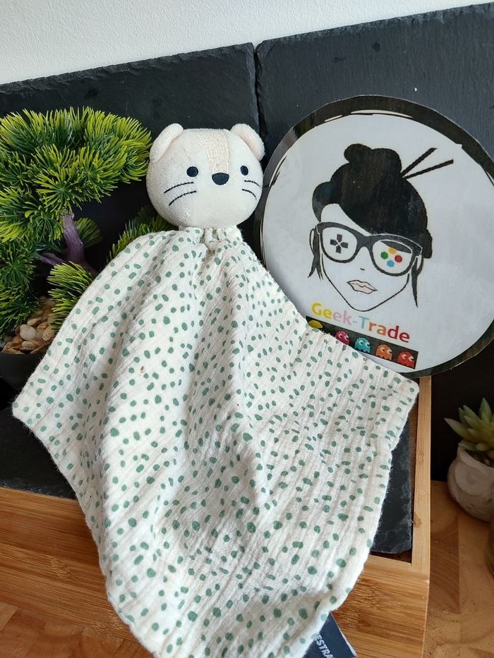 doudou orchestra guépard léopard chat blanc vert pois point lange doré noir 2231 - photo numéro 1