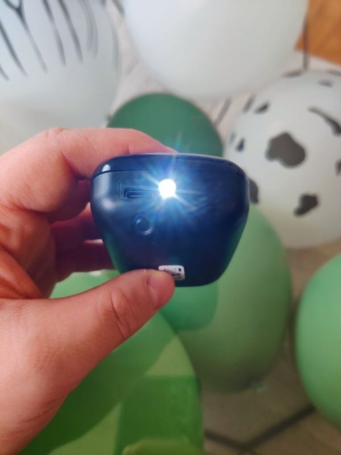 Boîtier d'écouteur sans fil bluetooth, avec indicateur de recharge, une petite lampe torche se trouve sur le côté du boîtier, permet également de servir de batterie externe grâce à sa fiche USB 2.0