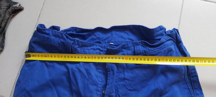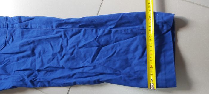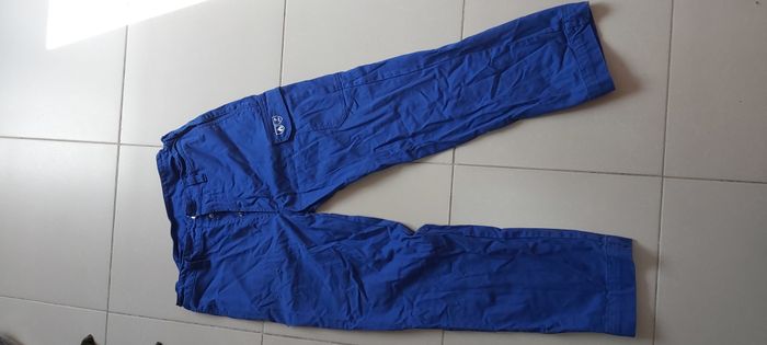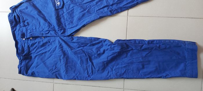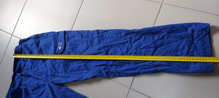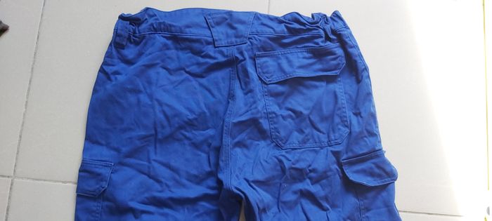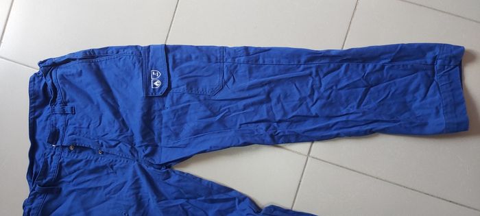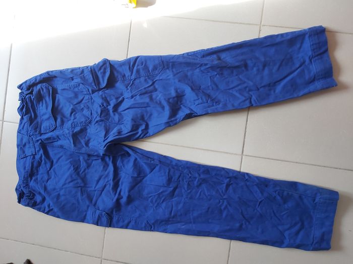 .Pantalon de travail Taille 3 Fermeture par bouton Brayette pression 2 poches en haut , niveau jambe une petite poche et une grande poche Fermeture par pression, à l'arrière une poche Fermeture par pression Défaut devant : un côté un trou , l'autre côté 2 trous voir photo #carinedditaille3homme