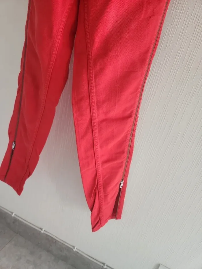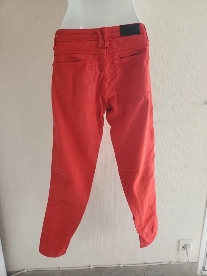 Jean rouge orangé Sandro taille 34 fermeture éclair à chaque jambes - photo numéro 14
