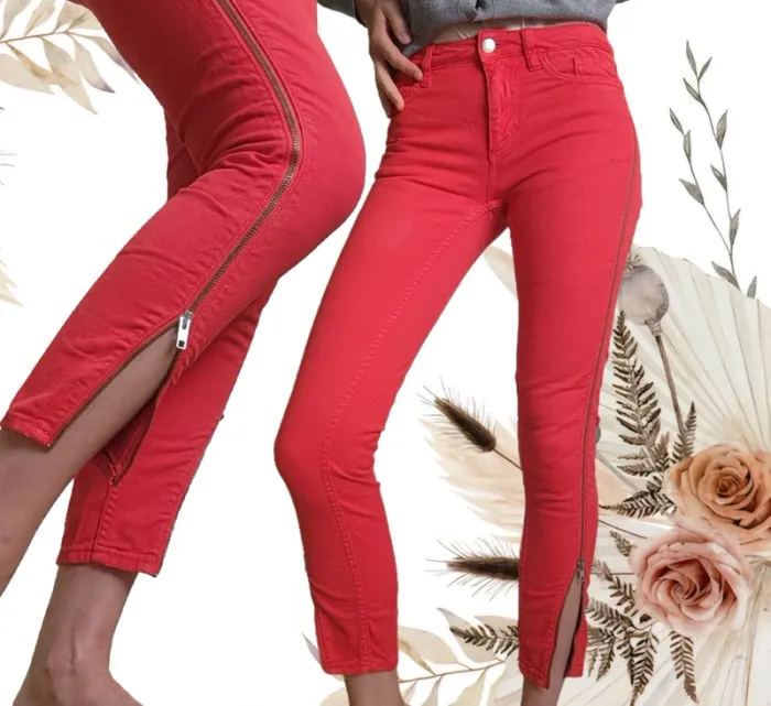 Jean rouge orangé Sandro taille 34 fermeture éclair à chaque jambes