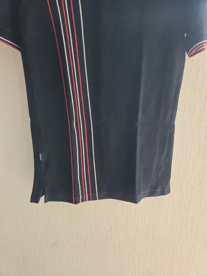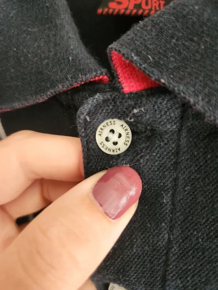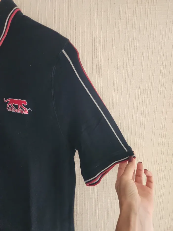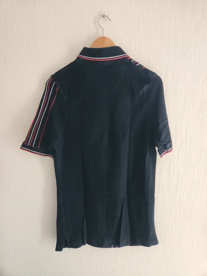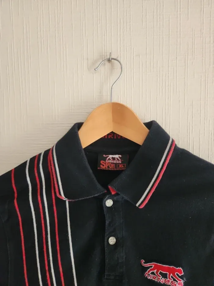Polo manches courtes Airness noir avec bandes blanches et rouges ⚠️ taille XL sur l'étiquette mais correspond à une taille L Envoi rapide et soigné via diverses plateformes #pseudodohomme #airness #polo #polomanchescourtes