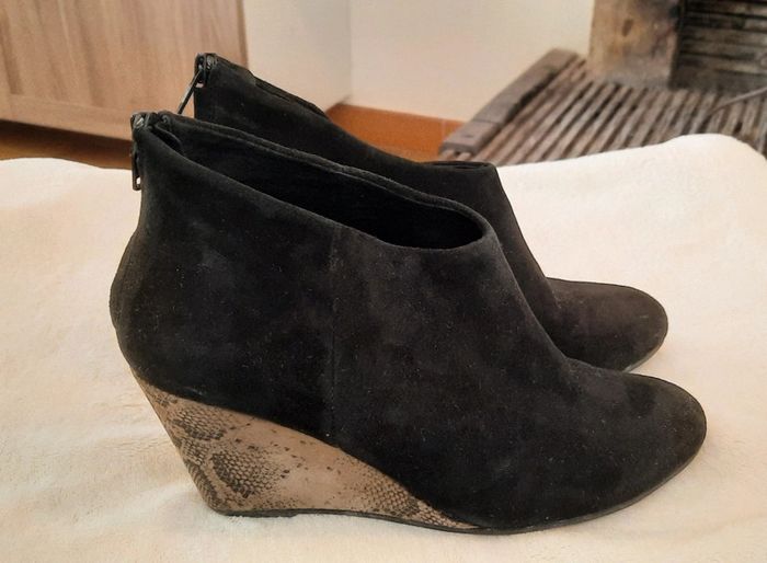 ‼️ envoie à partir de 5€ Merci ! Regardez mes autres annonces et pleins d'annonces à mettre... - Bottine Naf Naf talon compensé de 7 cm. Pointure 38 Cuir Véritable. #chaussuremeggmae #bottine Nous avons beaucoup de choses à vendre. Une maison à vider. On a une page Vide Maison Vide Grenier du 06. Y a déjà des albums photos et j'ai pleins de choses à rajouter encore. Des choses neuf aussi, pour des cadeaux pas cher. N'hésitez pas à venir en MP. Envoie avec mondial relay quand c'est possible. Ou à récupérer au Cannet 06110 Voir mes autres annonces ! Réduction avec un lot. Bon shopping ! #videmaisonvidegrenierdu06 Face  ---> Vide Maison Vide Grenier du 06 Beeb ---> lepetitdhomme Vinte  --->   megg-mae Leboncoi ---> Megg