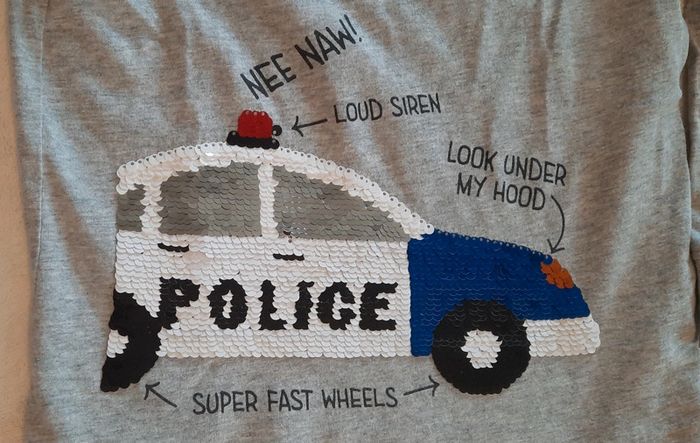 ‼️ envoie à partir de 5€ Merci ! Regardez mes autres annonces et pleins d'annonces à mettre... - T-shirt Police à sequin. 3/4 ans. #vetementsenfantsmeggmae #tshirt #police Nous avons beaucoup de choses à vendre. Une maison à vider. On a une page Vide Maison Vide Grenier du 06. Y a déjà des albums photos et j'ai pleins de choses à rajouter encore. Des choses neuf aussi, pour des cadeaux pas cher. N'hésitez pas à venir en MP. Envoie avec mondial relay quand c'est possible. Ou à récupérer au Cannet 06110 Voir mes autres annonces ! Réduction avec un lot. Bon shopping ! #videmaisonvidegrenierdu06 Face  ---> Vide Maison Vide Grenier du 06 Beeb ---> lepetitdhomme Vinte  --->   megg-mae Leboncoi ---> Megg