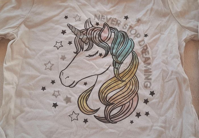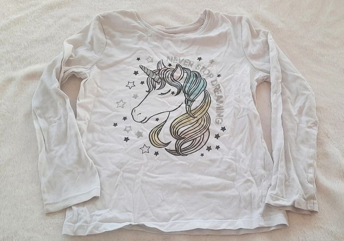 ‼️ envoie à partir de 5€ Merci ! Regardez mes autres annonces et pleins d'annonces à mettre... - T-Shirt blanc Licorne. Manche longue. 4/5 ans Primark. 2 taches d'ou le prix. #vetementsenfantsmeggmae #enfants #fille #4ans #5ans #haut Nous avons beaucoup de choses à vendre. Une maison à vider. On a une page Vide Maison Vide Grenier du 06. Y a déjà des albums photos et j'ai pleins de choses à rajouter encore. Des choses neuf aussi, pour des cadeaux pas cher. N'hésitez pas à venir en MP. Envoie avec mondial relay quand c'est possible. Ou à récupérer au Cannet 06110 Voir mes autres annonces ! Réduction avec un lot. Bon shopping ! #videmaisonvidegrenierdu06 Face  ---> Vide Maison Vide Grenier du 06 Beeb ---> lepetitdhomme Vinte  --->   megg-mae Leboncoi ---> Megg