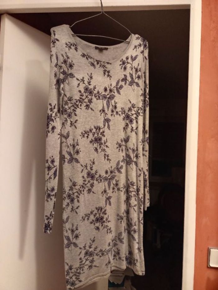 Très jolies fleurs noires. Les manches sont moulantes. La robe peut se porter en toutes saisons et en hivers avec une veste, style tailleur pour le chic ou un gilet pour être décontracté.