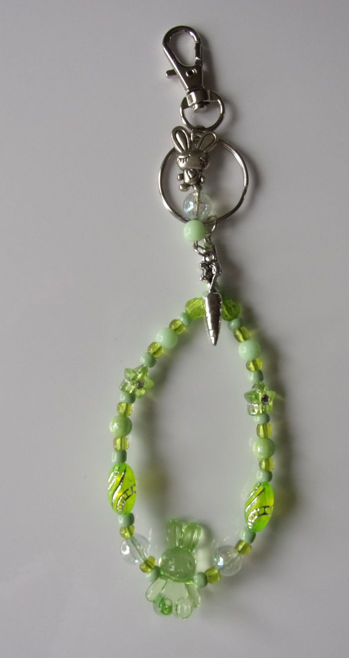 Porte clé ou Déco de sac à main lapin Vert Composé de perles en plastique, vous pouvez l'accrocher à votre sac à main Hauteur totale du porte clé 17 cm