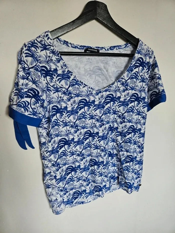 📌Lot 20% de remise dès 5 articles T-shirt manche courte, bleu avec lien à nouer sur les épaules ➡️Largeur à plat sous les bras 48 cm ➡️ Longueur 62 cm ➡️100% coton ⭐Excellent état ✈Envoi rapide des colis 💗 Abonnez vous à mon profil, nombreux articles ajoutés régulièrement ! #laetitresors_tshirt38 #laetitresors #tshirt #bleu #blanc #manche #courte #bonobo #lien #nouer #epaule #fleur #feuille #tropical