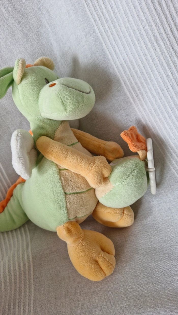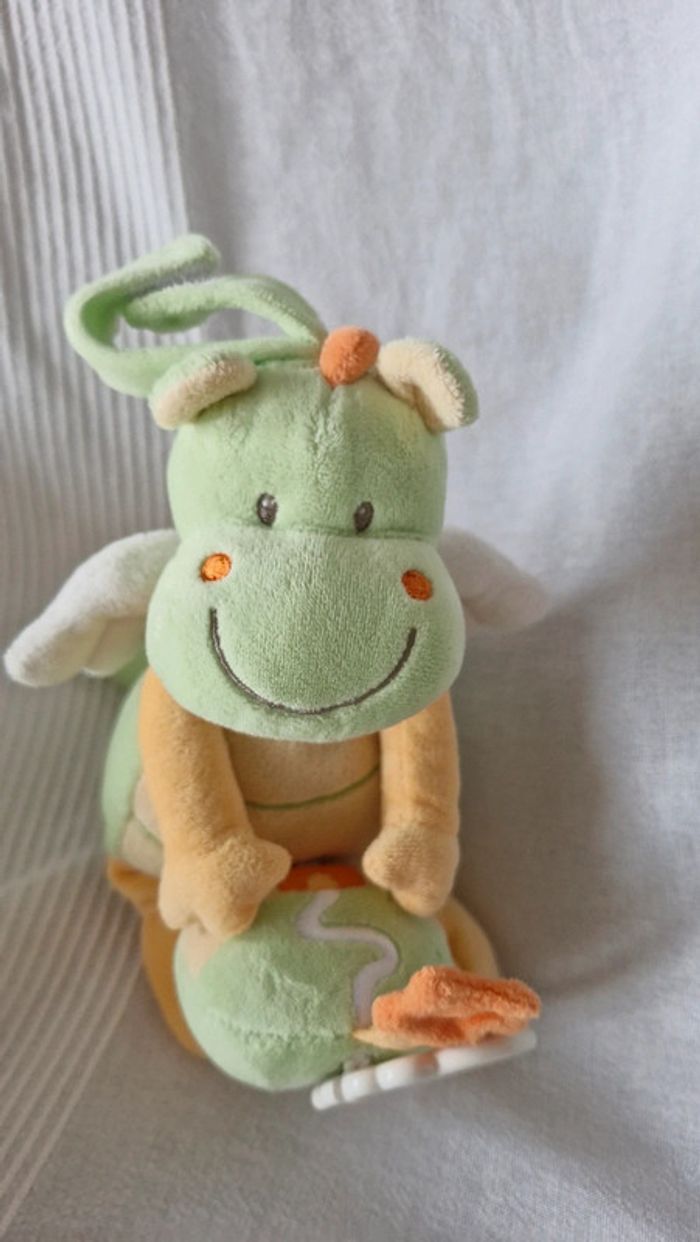 Peluche Nicotoy Dragon vert musical ( marque effacée sur l étiquette) Bon état Pour voir tous les doudous #OceanisseDoudou