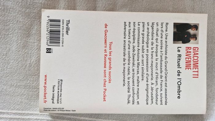 Livre de poche de Giacometti Ravenne Le rituel de l ombre Tres bon état Pour voir tous les livres #OceanisseLivre #Oceanisse_GiacomettiRavenne