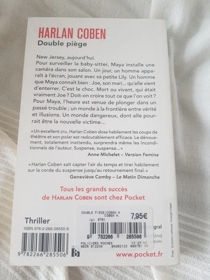 Livre de poche d Harlan Coben Double piège Livre en bon état Couverture légèrement écornée. Ecriture sur couverture intérieure. Cf photo Pour voir tous les livres de mon dressing #OceanisseLivre #Oceanisse_HarlanCoben