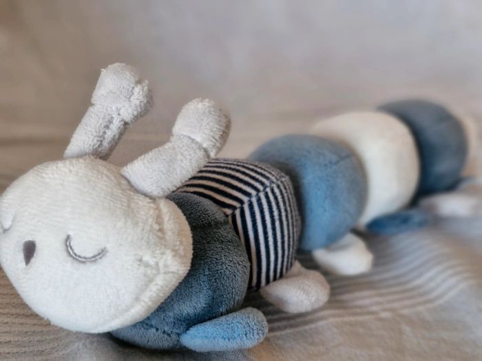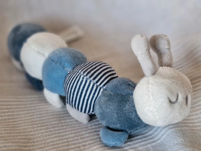 Peluche OBAIBI chenille bleue Très bon état Pour voir toutes les peluches et doudous de mon dressing #OceanisseDoudou #Oceanisse_Obaibi
