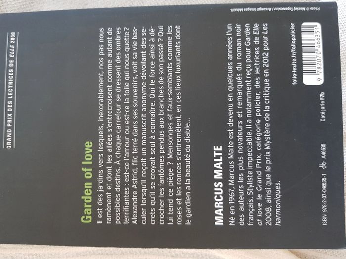 Livre de poche de Marcus Malte Garden of love Tres bon état Pour voir tous les livres #OceanisseLivre