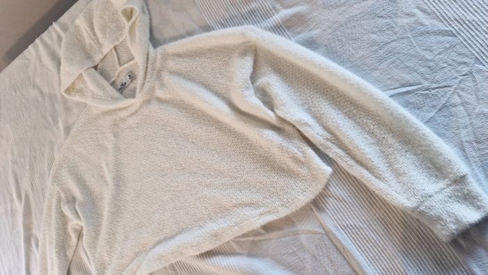 Pull HOLLISTER Taille M Court et large, à capuche , couleur blanc cassé Très bon état