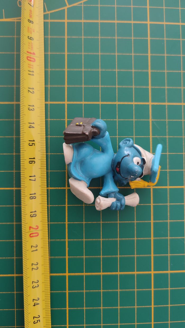 Jouet ancien vintage dans l'état Schtroumpf diplômé vintage Schtroumpf tenant un diplôme et une mall - photo numéro 1