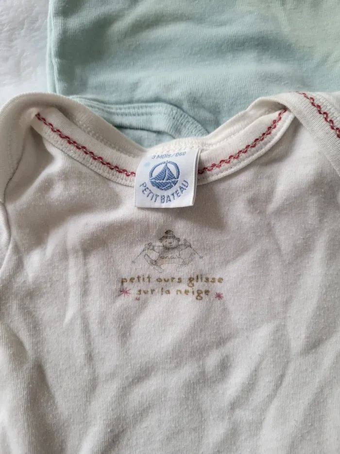 En bon etat, le vert a une légère tâche Taille 3 mois 2 baby gap et 2 petit bateau