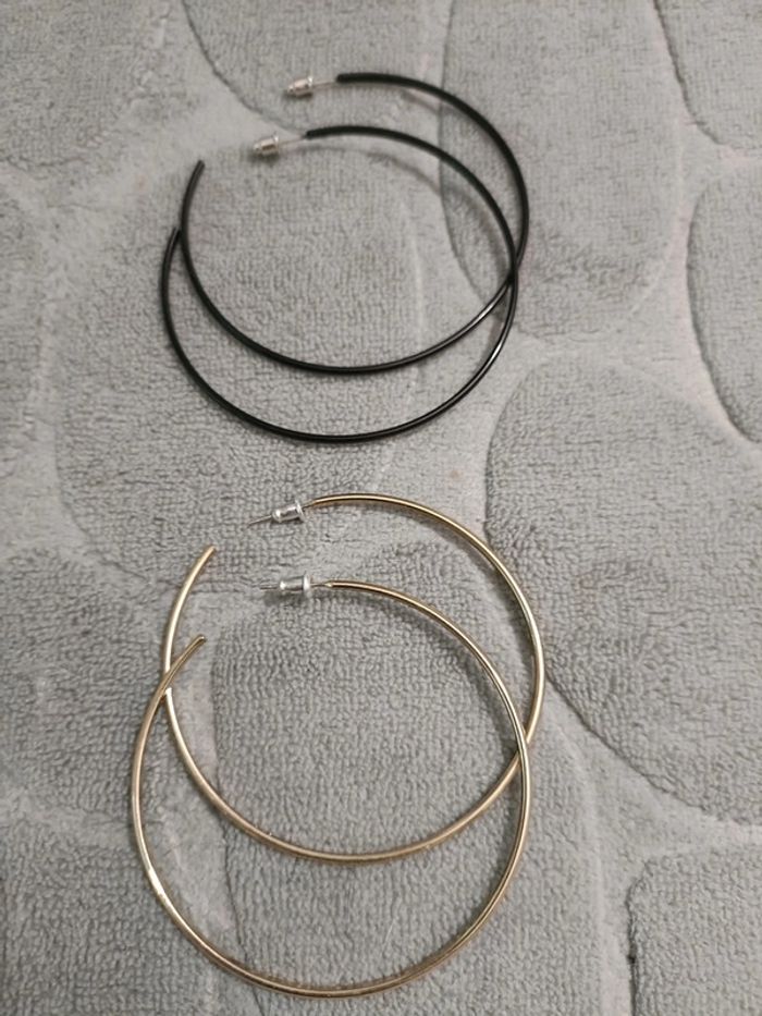 2 boucles d'oreille grande #créole #bouclesdoreilles #bijoux #fantaisie #lot #creoledorée #créolenoir