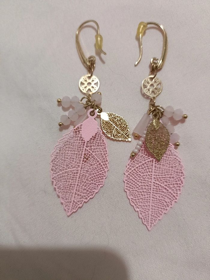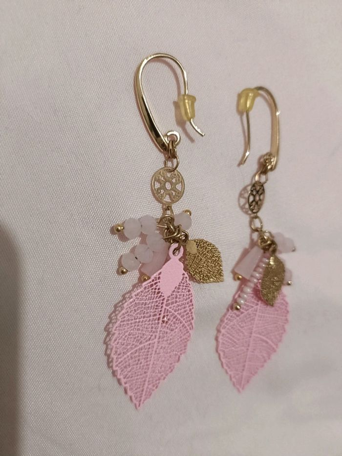 Boucles d'oreilles fantaisie Neuve #feuilles #rose #bijouxfantaisie #bouclesdoreilles