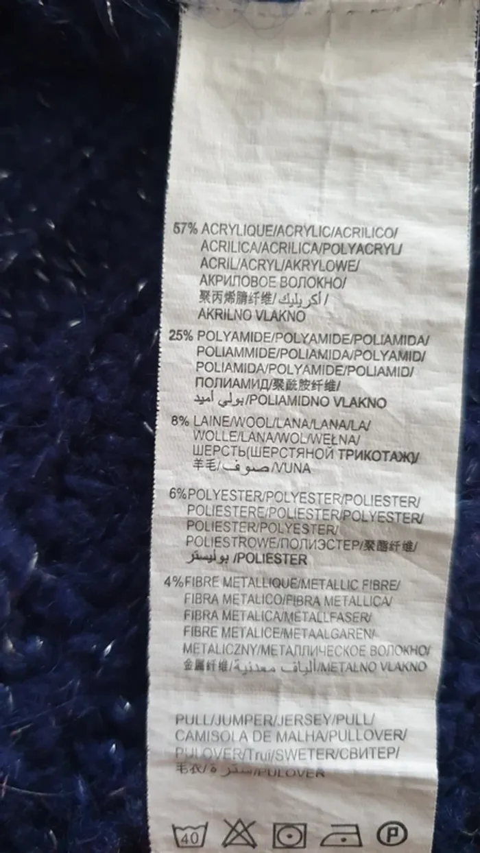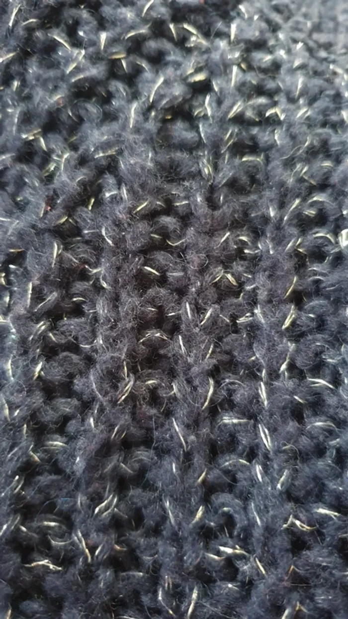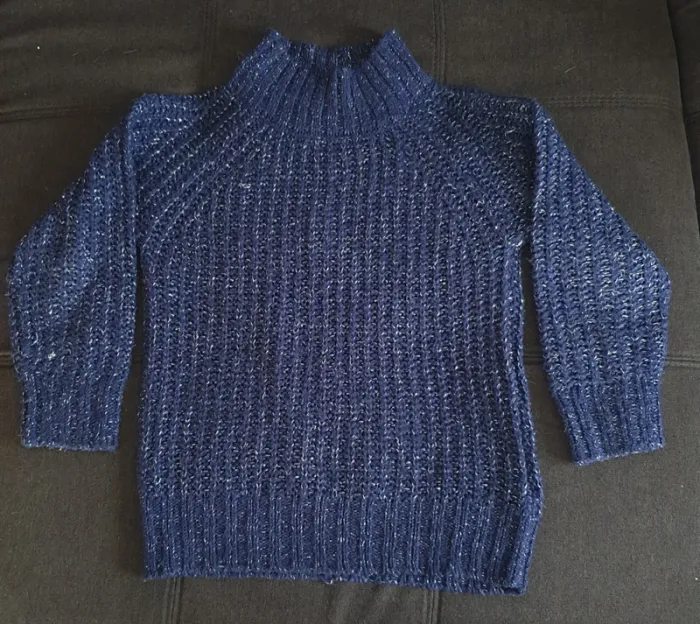 Pull marine col montant avec fil métallisé. Contient de la laine. #8anschouchoudu17
