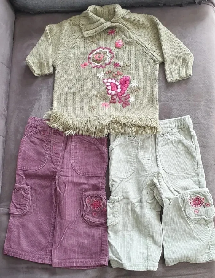 Lot 1 pull et 2 pantalons velours 12 mois