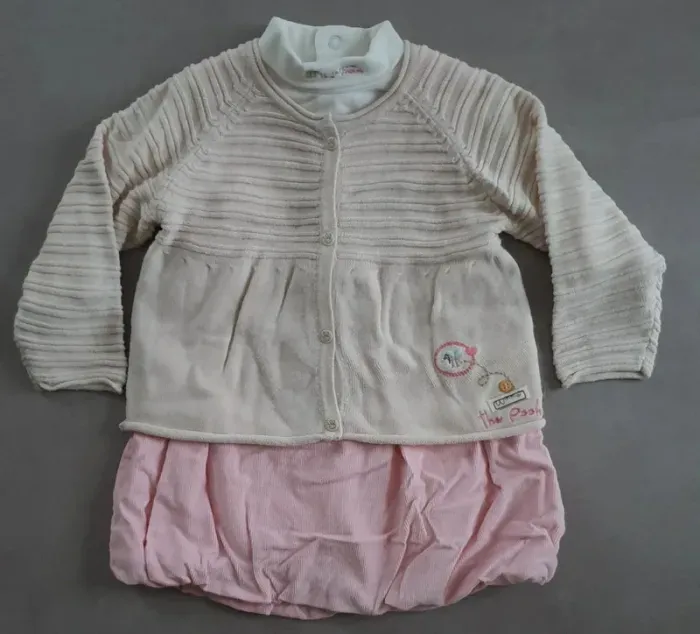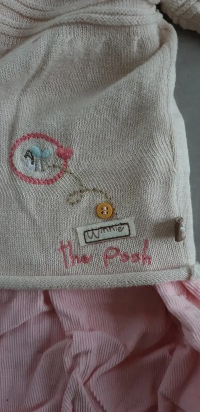 Ensemble Winnie l'ourson, Winnie the pooh 6 mois. Robe velours, sous pull et gilet. #6moischouchoudu17