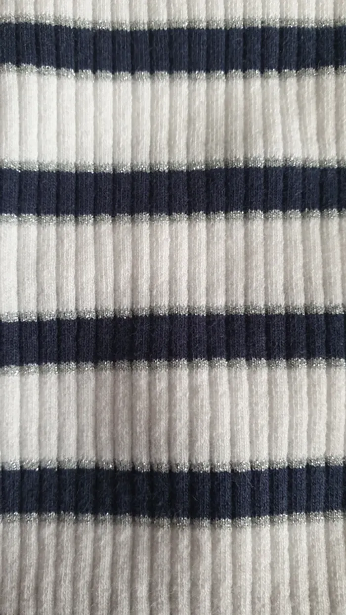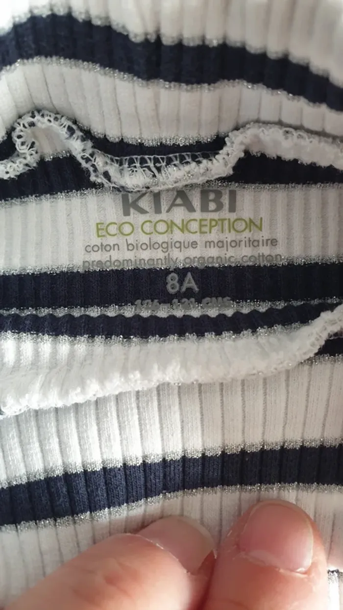 Tee-shirt manches longues et col montant rayé marine blanc et argenté Kiabi #8anschouchoudu17