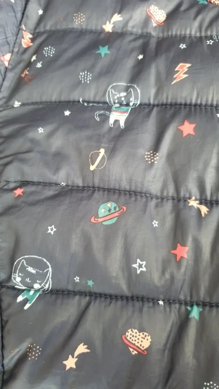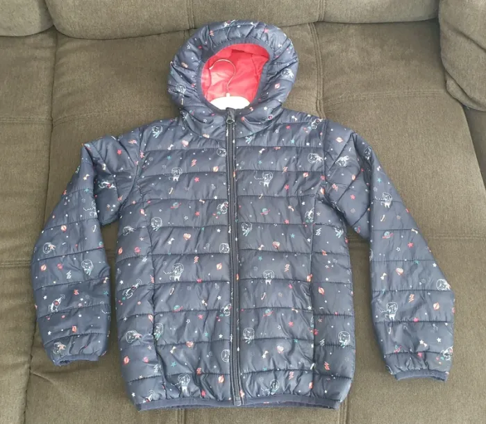 Doudoune légère marine avec motifs. Une poche légèrement craquée Gémo #8anschouchoudu17