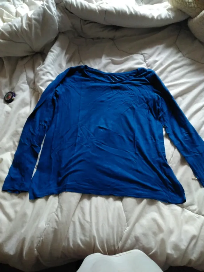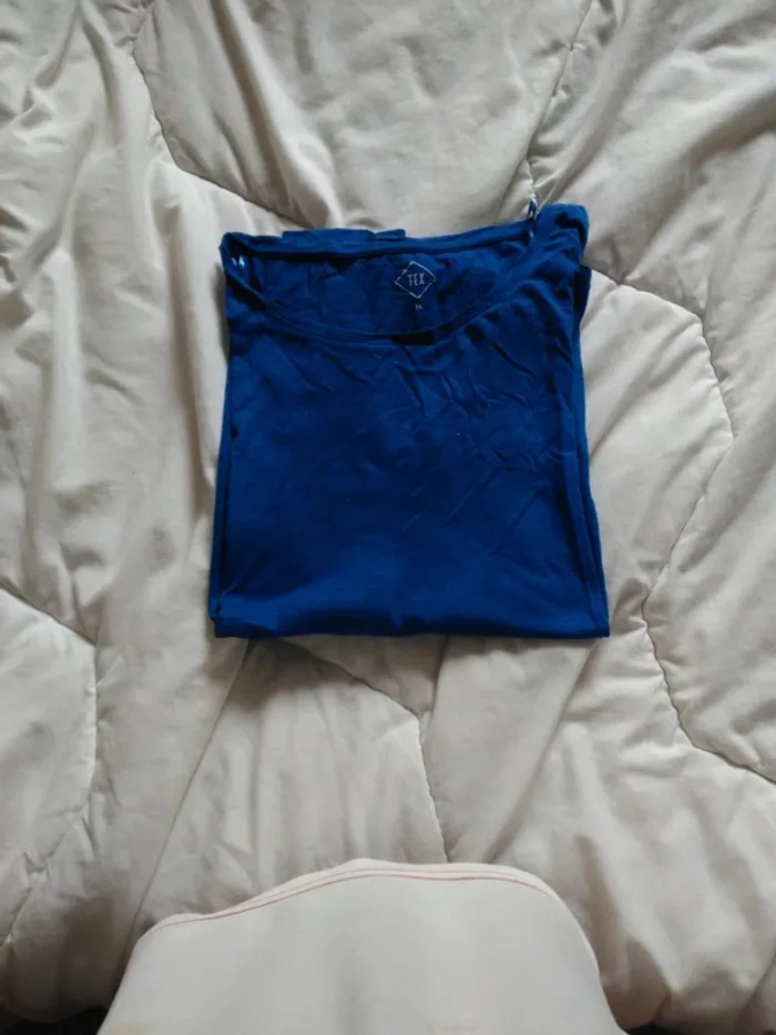 Tee short Fille Manches longues Marque : Tex Taille M Bleu toi Col rond 50%Coton 50% Viscose