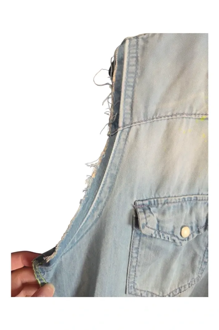 💥 Chemise sans manches en jean de la marque Zara Man, à l’esprit résolument street et artistique grâce à son effet taches de peinture très stylé ! Coupe droite et souple, convient aussi bien pour un look homme que pour une tenue oversize féminine. 🌈 🔹 Taille : M 🔹 Largeur aisselle à aisselle : 54 cm 🔹 Longueur dos : 72 cm 🔹 État : Très bon état 🔹 Style : Décontracté / urbain / mixte 🔹 Marque : Zara Man ✨ Idéale à porter ouverte sur un t-shirt ou fermée pour un style plus affirmé. Peut se combiner avec un short, un jean, ou même une jupe pour un contraste original. #hommem #femme38 #chemiseenjean #zaraman #mixte #styleurbain #streetwear #taillem #sansmanches #lookartistique #secondemain #laboutiquedekatmin38 #laboutiquedekatminhomme