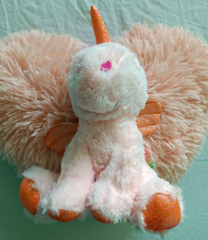 Lot peluche licorne 🦄 crinière multicolore et coussin coeur pilou-pilou - photo numéro 8