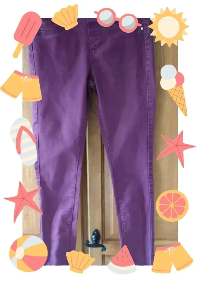 Pantalon jeans skinny élastique à la taille prune - photo numéro 1