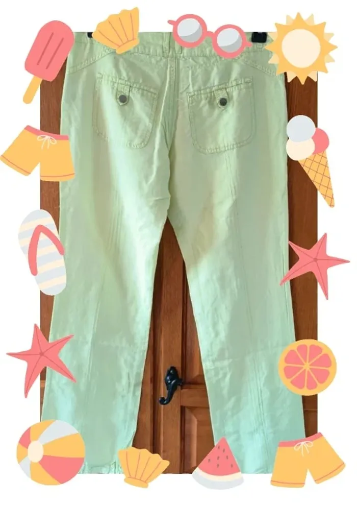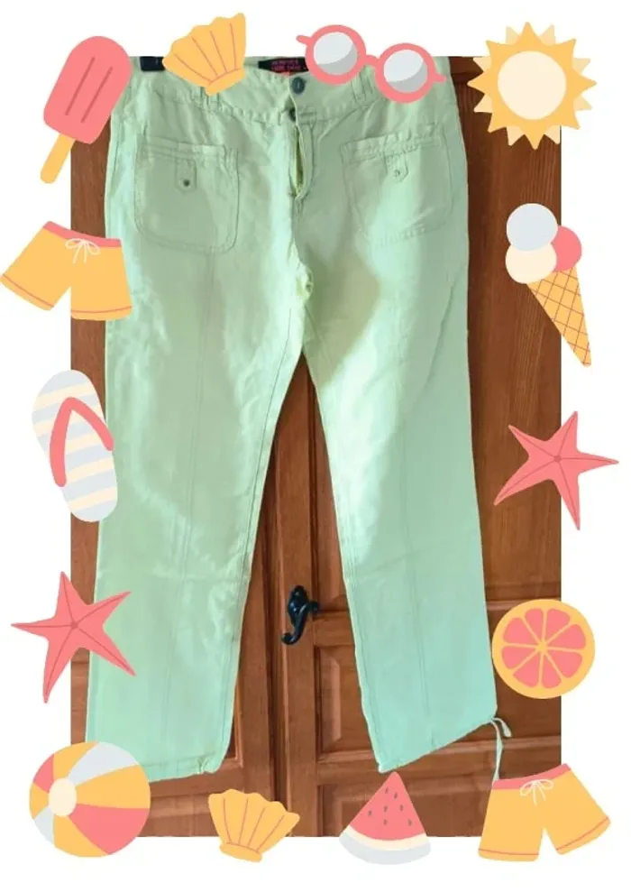 En excellent état . Pantalon en lin 55% et coton 45% super léger et agréable pour l'été. La couleur est vert anis. Taille 38 85 cm de tour de taille Plus de vêtements de cette taille cliquez sur le lien et n'oubliez pas de désactiver les filtres.Jusqu'a 30% de réduction en cas d'achats multiples 😉 #Gnyfer08vêtementsfemme38