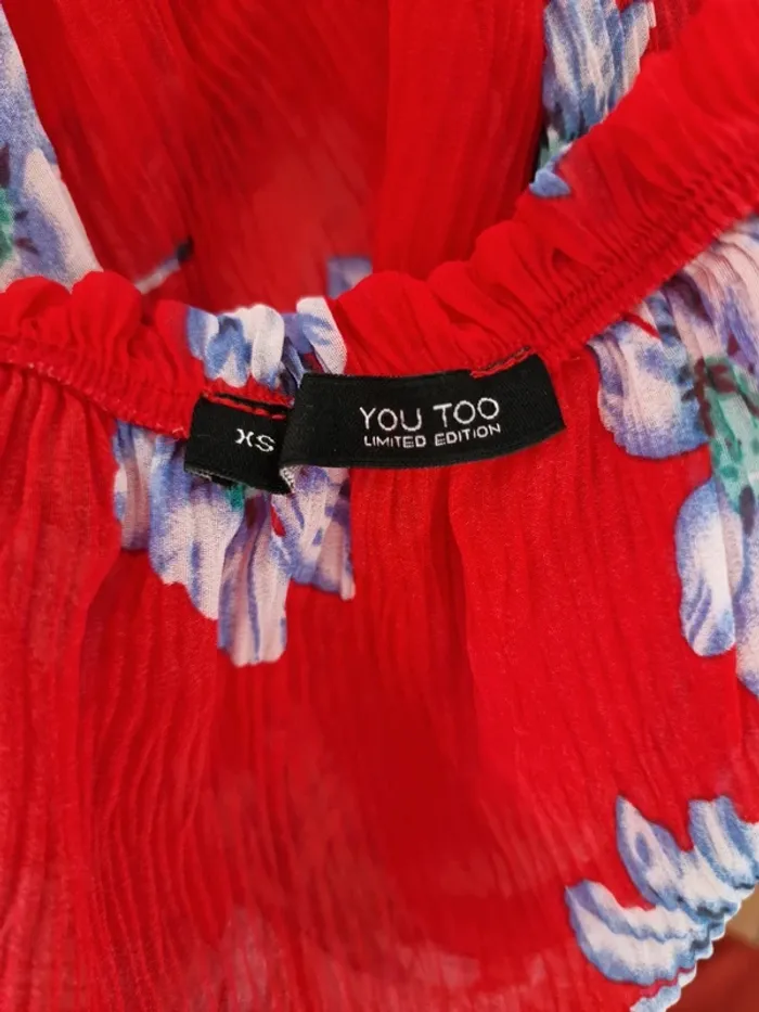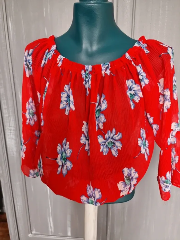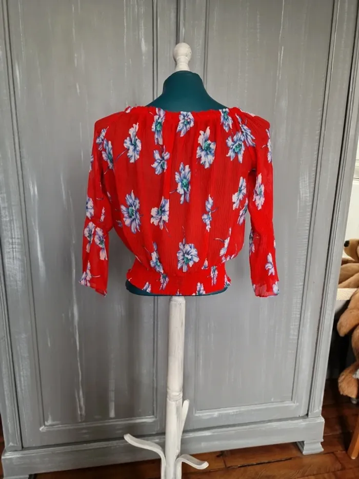 Blouse femme En très bon etat Rouge avec fleurs Manches 3/4 You too