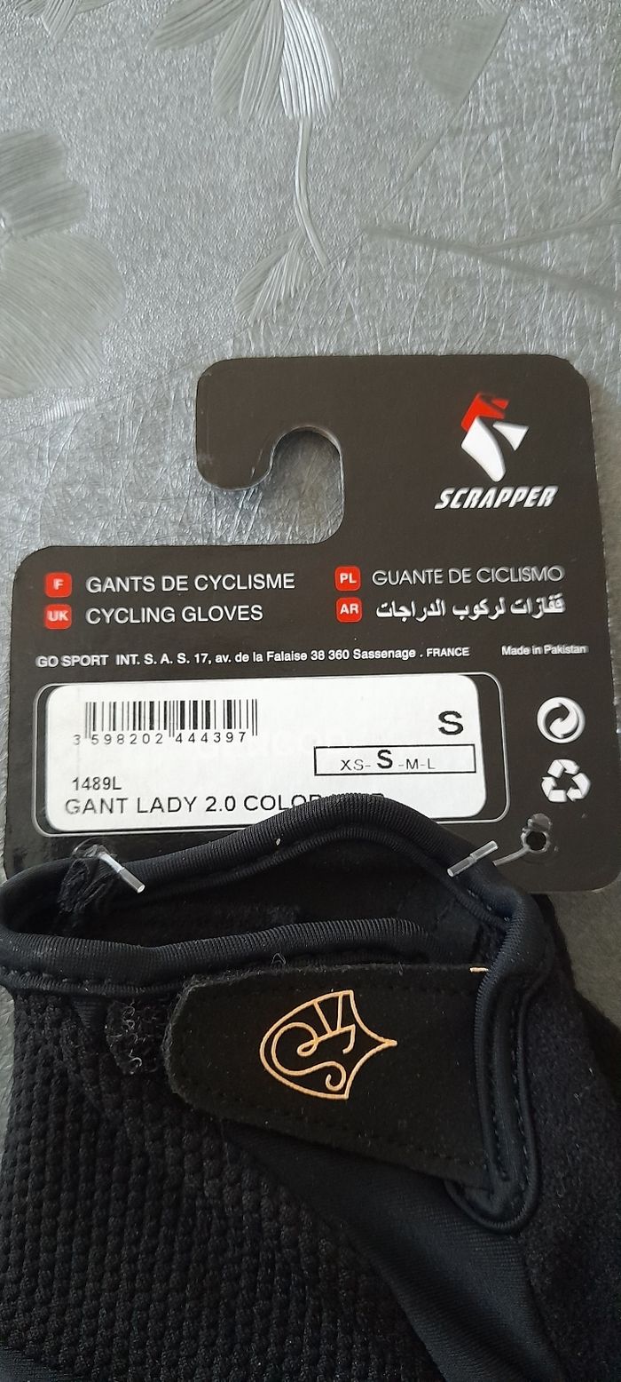 Gant de cyclisme taille S Marque SCRAPPER Couleur noir et inscriptions jaune Languette pour mettre et enlever plus facilement Neuf encore avec étiquette