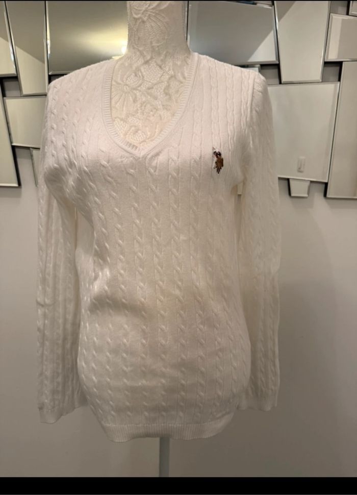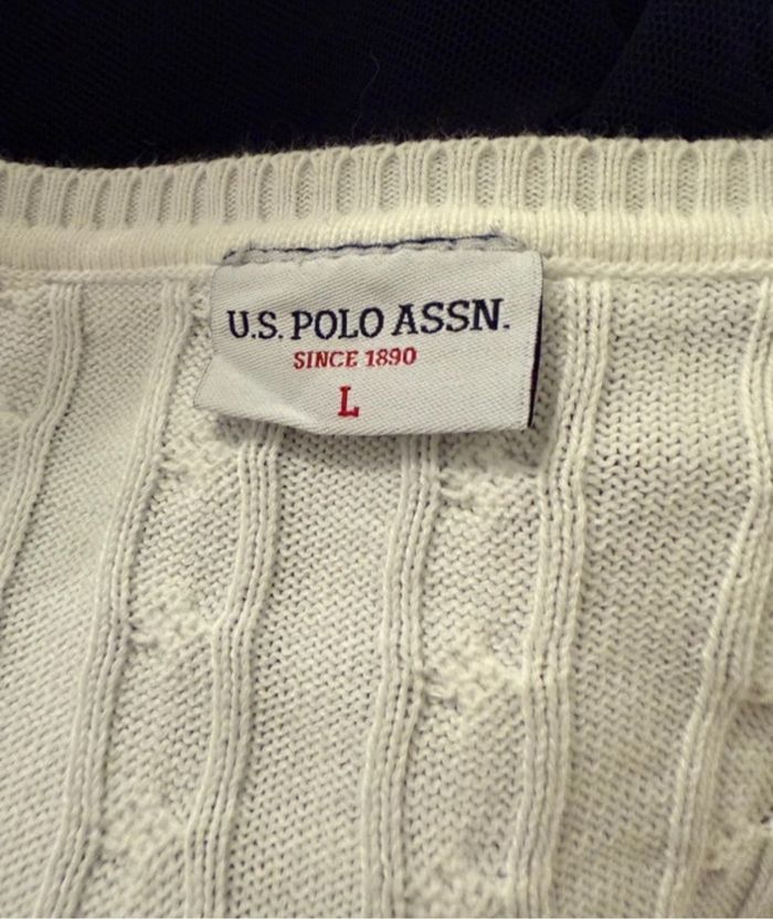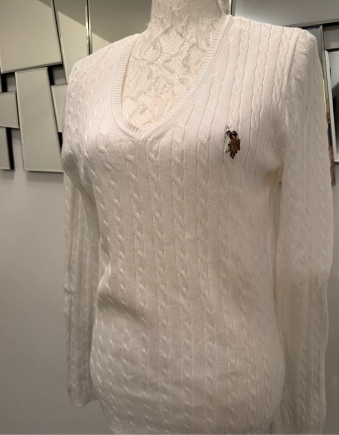 🧥 Pull femme torsadé 🏷️ Marque : U.S. Polo Assn 🔖 Logo brodé sur la poitrine 💰 Valeur : 88€ 📏 Taille : L >> 40 📐 Dimension aisselle à aisselle : 50 cm 🌱 Matière : 100% coton