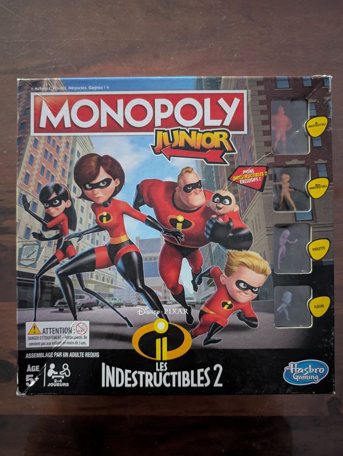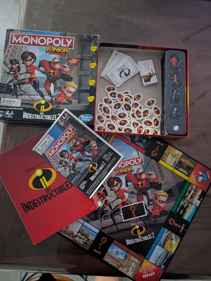 Vends jeu Monopoly junior Les Indestructibles Marque Hasbro complet et en bon état.