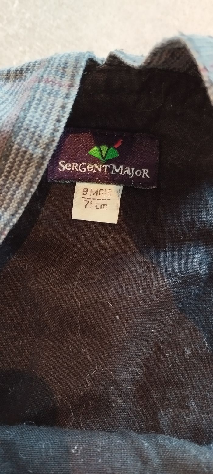 Bonjour, Je vends cette salopette pour garçon en taille 9 mois de la marque sergent major en très bon état
