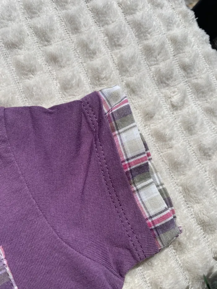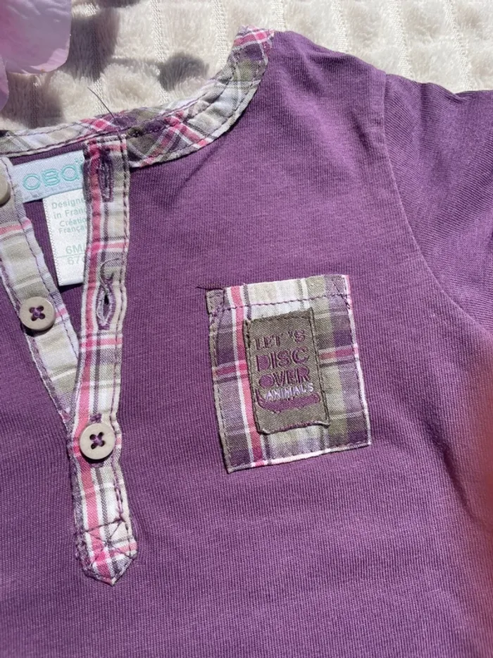 Joli polo violet pour petit garçon – taille 6-9 mois. 👕 Détails stylés sur les manches et le côté droit du torse 👶 Confortable et facile à enfiler grâce aux boutons à l’encolure Idéal pour un look chic et décontracté ! Très bon état ✅ Maison non fumeur, pas d’animaux 🏡 📦 Envoi rapide et soigné 💬 D’autres vêtements bébé disponibles dans mon dressing !
