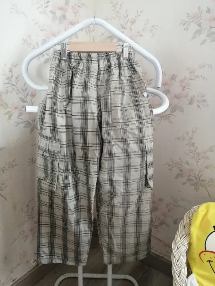 Pantalon cargo beige et noir à carreaux avec poches et lien à nouer / sans marque / (6ans) - photo numéro 4