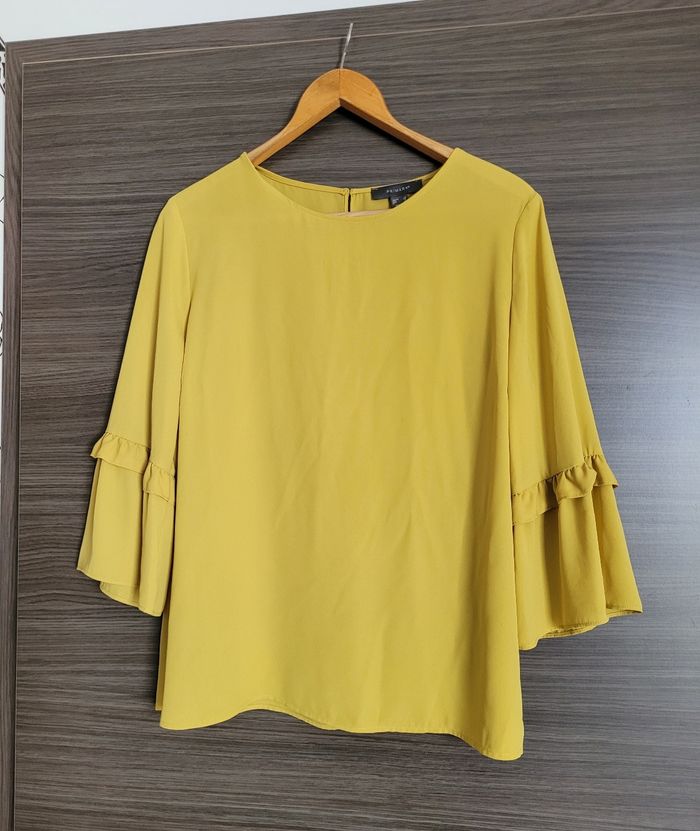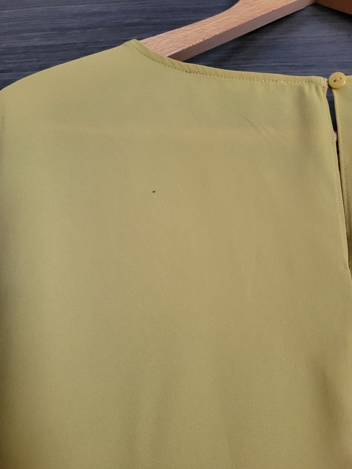 Blouse fluide primark eur 46 Jaune En très bon état, juste un point sur l'omoplate gauche Largeur aisselle 57 cm Largeur épaule 43 cm Longueur 66 cm