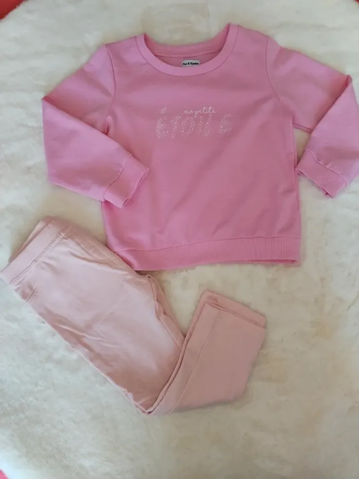 Ensemble 3 ans sweat + jegging rose - photo numéro 1
