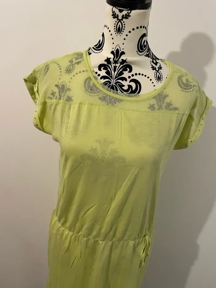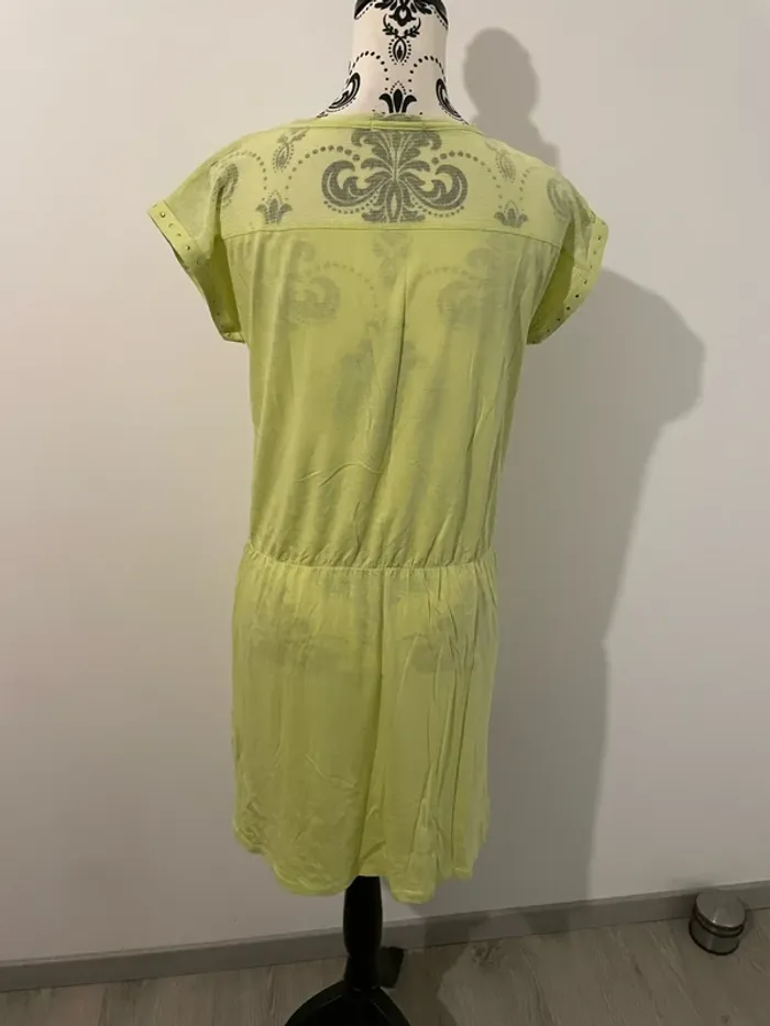 Jolie robe fluide de la marque U Collection, couleur jaune, idéale pour le printemps ou l’été ☀️ Coupe droite avec taille légèrement froncée, manches courtes et détails dentelle discrets au niveau du haut. Taille 38/40 – convient à un M ou un L. ✔️ Très bon état ✔️ Confortable et facile à porter ✔️ Tissu léger et agréable 📦 Envoi rapide et soigné 💬 N’hésite pas si tu as des questions !