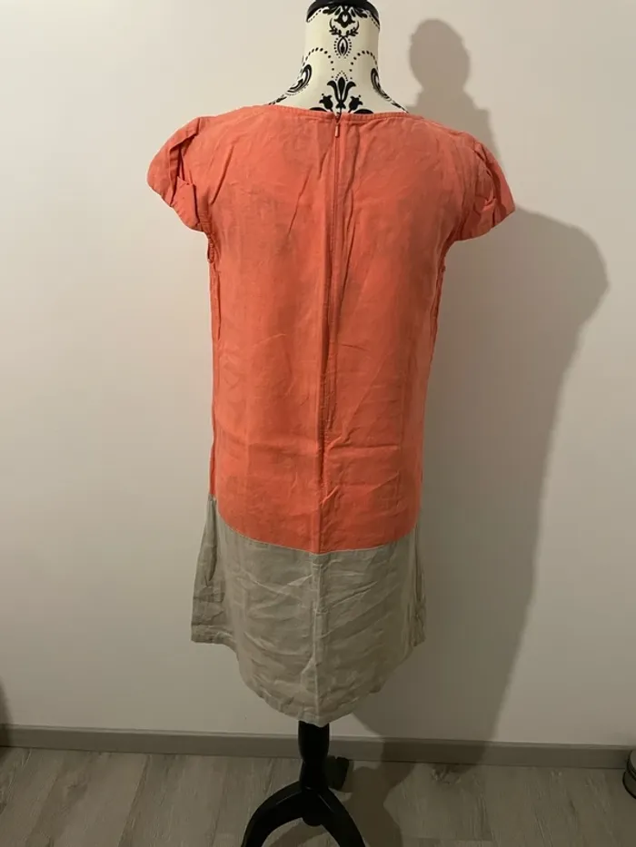 Robe en lin Caroll taille 38 corail beige manches courtes - photo numéro 3