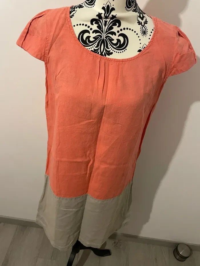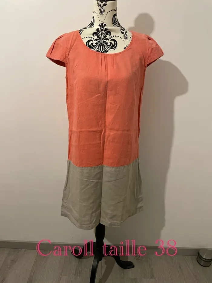 Robe en lin Caroll taille 38 corail beige manches courtes - photo numéro 1