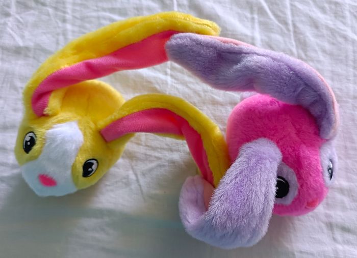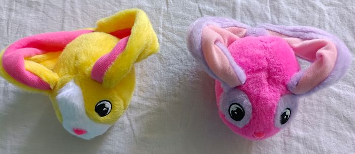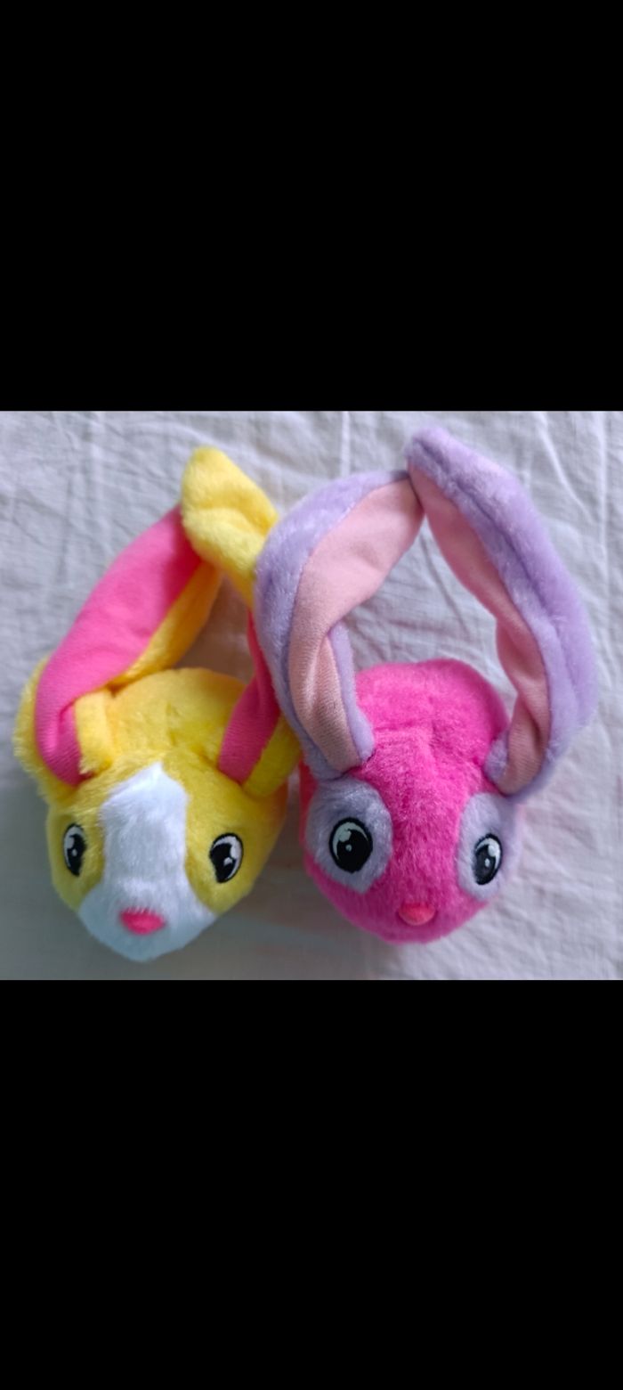 🚨Lot indissociable⛔ Je ne répondrai pas aux demandes d'achat à l'unité *Lapin jaune et rose *Lapin rose et parme Les oreilles aimantées permettent de transporter les lapins autour du poignet, accrochés à un cartable ou sac à dos, de les attacher entre eux. De multiples possibilités... #jeuxjouetscamilled974 #Lapin #peluche #aimant #oreillesaimantées